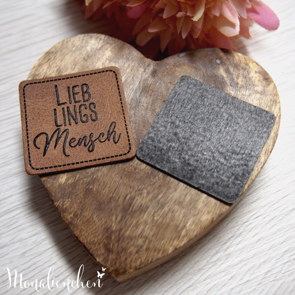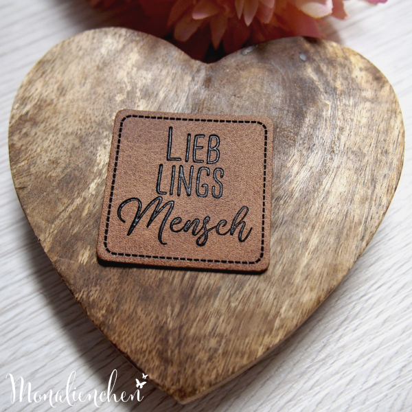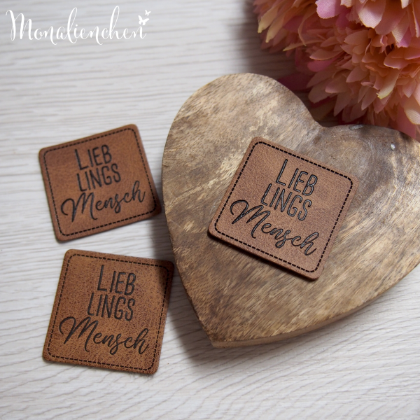 Suchst du besondere Kunstleder Labels? Dann ist meine Eigenproduktion "LieblingsMENSCH" vielleicht das Richtige für Dich. Diese Kunstleder-Label kannst du an Jacken, Hoodies, Taschen, oder auch Hosen annähen. Ein absoluter Hingucker und ein Must Have für den letzten Schliff deines Schmuckstückes